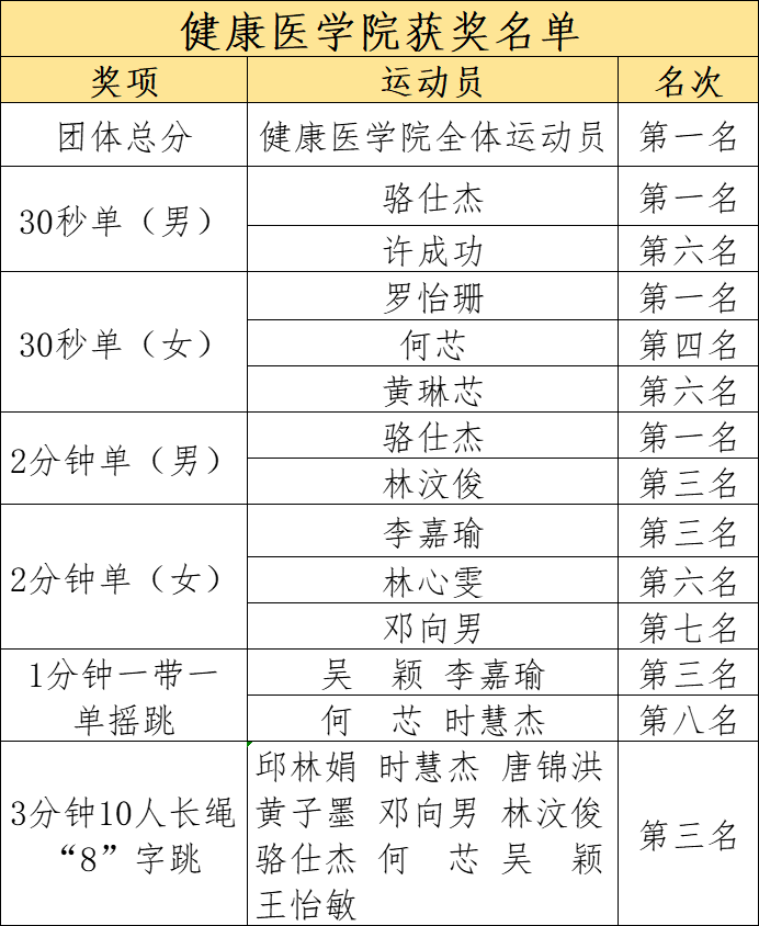 5月7日下午,“绳彩飞扬”跳绳比赛在弘美楼一楼盛大开幕。来自全校的跳绳爱好者们齐聚一堂,共同见证了一场速度与激情的较量。健康学子积极参与,凭借出色的表现,荣获了多个项目的前三名,并摘得团体总分第一的桂冠。