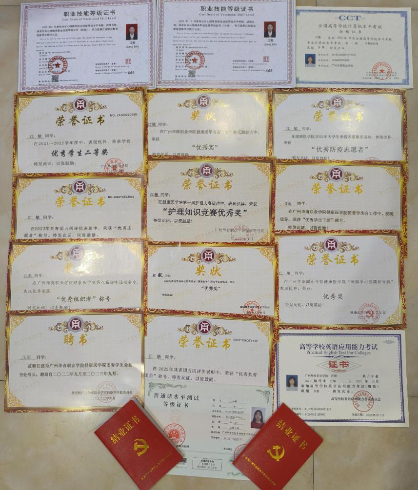 大家好!我叫江敏,来自广东梅州,系健康医学院2021级护理6班学生,在校期间担任健康医学院团委秘书处部长一职。自入学以来,积极向党组织靠拢,提交入党申请书,经过不断的努力成为了一名中国共产党党员。平时酷爱拍照记录生活,热情开朗,善于与人沟通,有较好的学习能力和责任心,具有良好的团队合作精神。