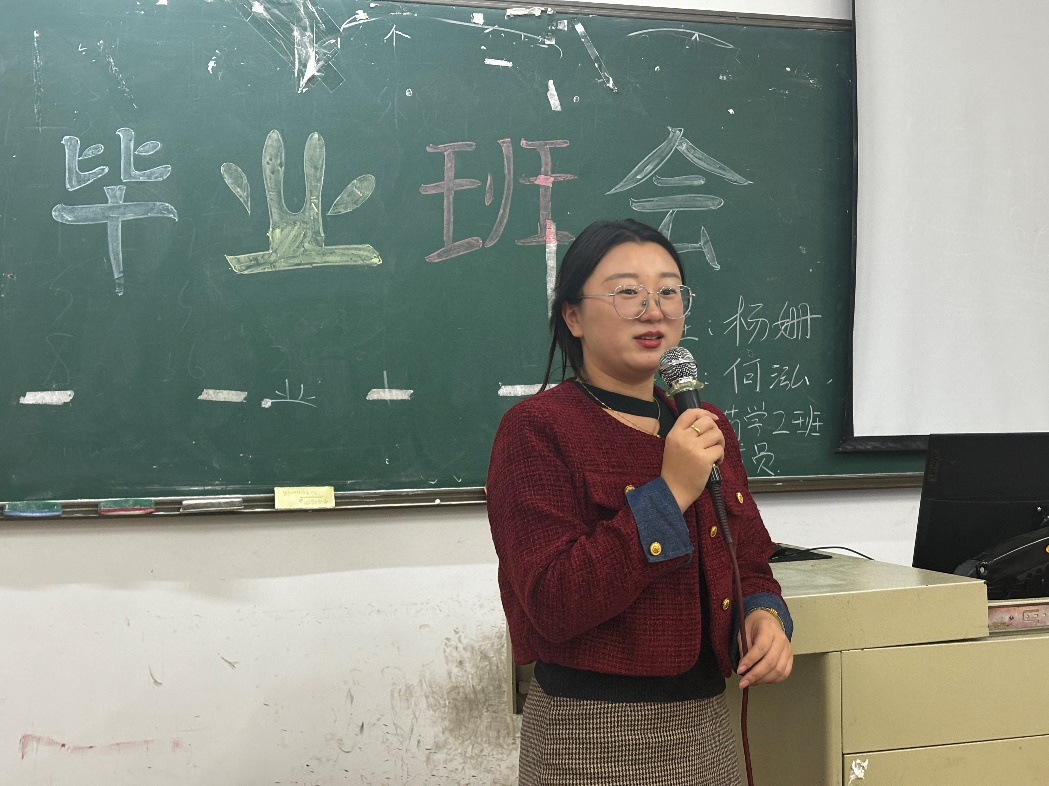 班主任杨姗老师上台发言,她回忆起与同学们相处的点滴,表达了对同学们的殷切期望与美好祝愿,激励大家在今后的人生道路上勇敢追梦。