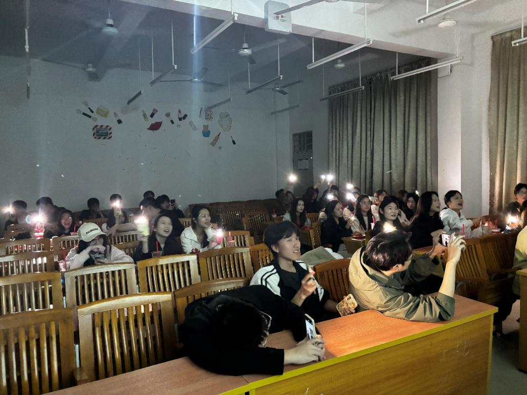 本次班会由班长温桂春和陈传先携手主持,他们以温暖而坚定的声音,拉开了这场特殊聚会的序幕。教室里,灯光柔和,气氛温馨,辅导员何泓老师、班主任杨姗老师与全体同学齐聚一堂,共同见证这一难忘时刻。