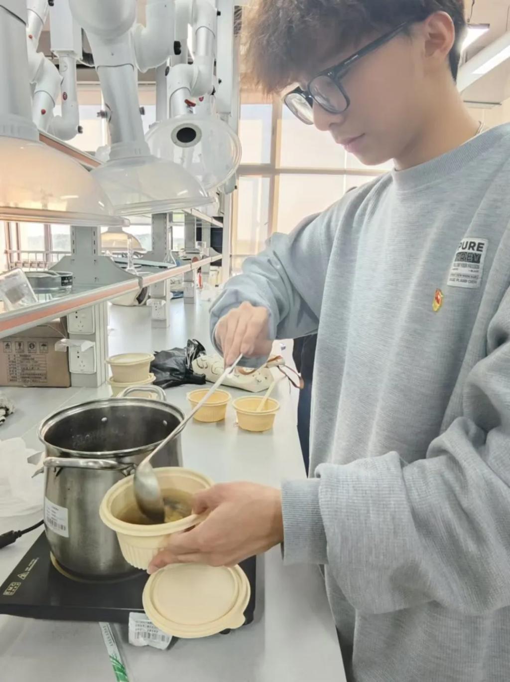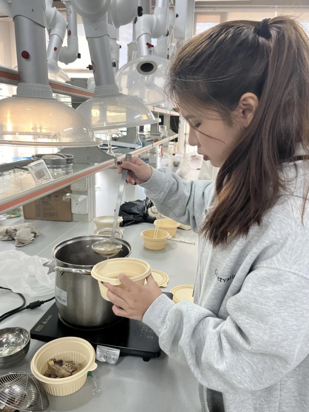 为了积极响应学校实践育人号召,助力网络优秀班级的建设工作,23药学1班煲汤小分队巧用所学,在2024年12月18日这天,相聚在A5-502精心烹制鸡汤药膳。