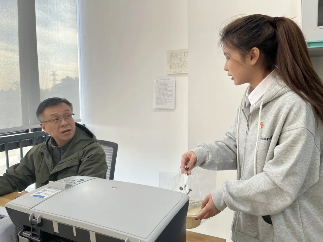 在活动进程中,杨滔老师、辅导员杨敏娟老师以及班主任刘淑英老师始终与同学们携手同行,一路相伴。自活动筹备伊始,老师们便倾囊相授,为班干们提供了全面且详尽的指导与坚实有力的支持。鸡汤出锅,热气腾腾,满是心意。煲汤小分队将精心熬制的润肺鸡汤端至A5-212、A5-203和博学楼B507办公室中老师们的手里。那腾腾热气,氤氲着浓浓的温情,让忙碌于工作的老师们在接过鸡汤的瞬间,被这份质朴而真挚的敬意与关怀所紧紧包围,暖人心扉。
