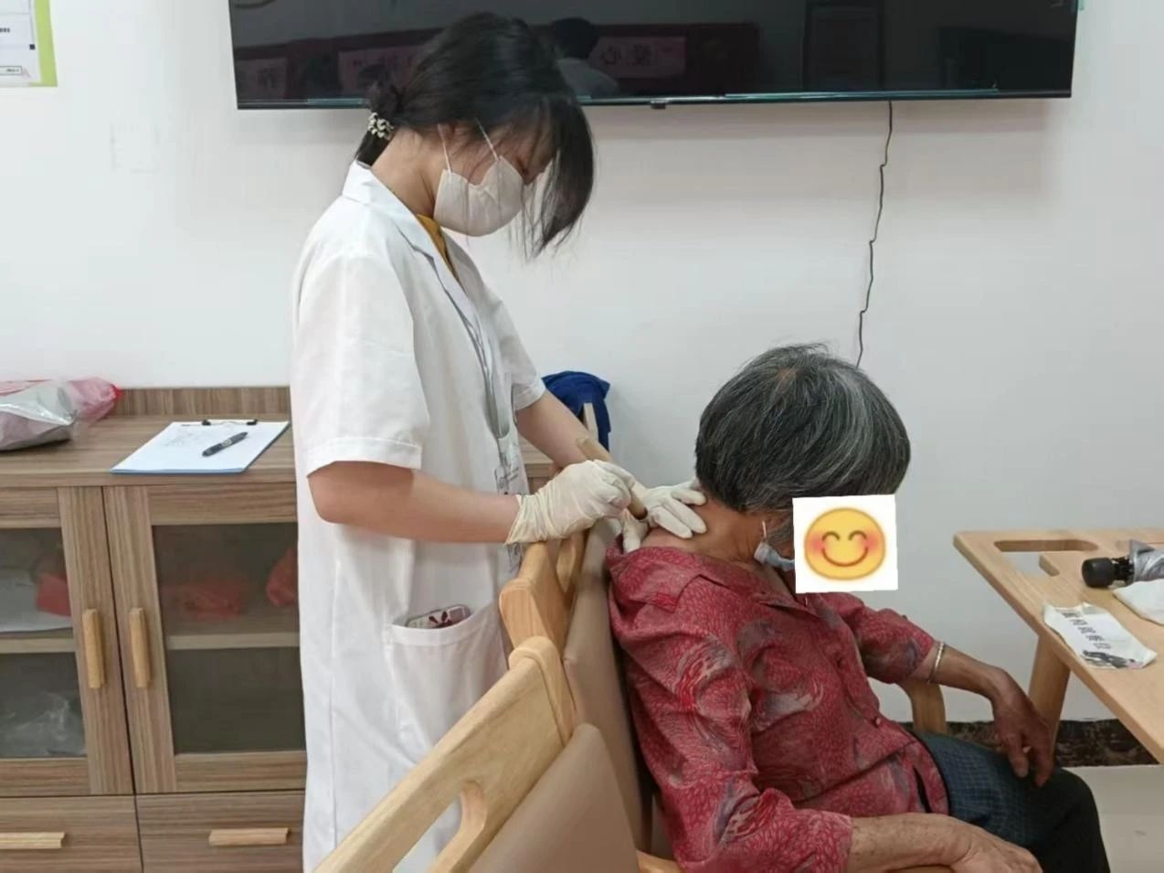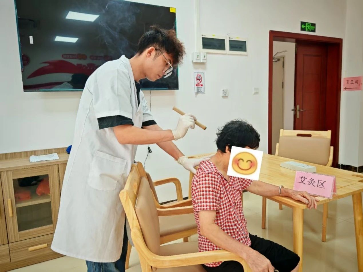在艾灸与推拿区域,传统技艺温暖着村民的身心。艾草的清香环绕在服务区的空气中,志愿者配合着专业的推拿手法,揉或按,捏或推,力度由浅入深,艾灸和推拿双管齐下,精准作用于村民劳损的肌肉,为辛苦劳动的村民有效缓解了倦意,疏通了筋骨。