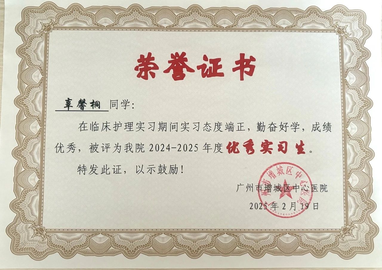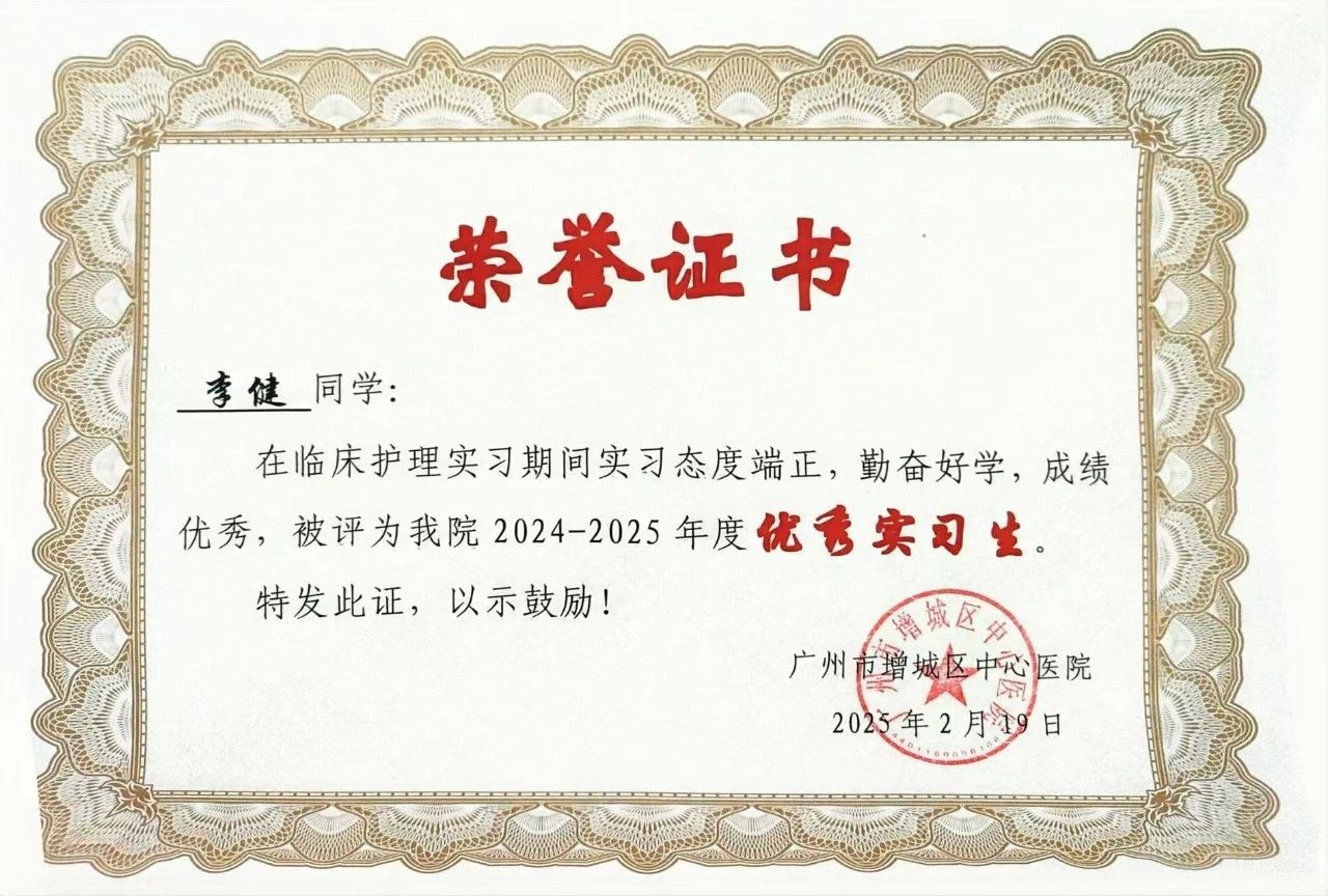获得南方医科大学南方医院增城院区2024年度优秀护理实习生,在临床工作中,我秉承全心全意为人民服务的宗旨,工作尽心尽责,热爱护理工作。耐心为患者解答疑惑同时得到患者与家属的认可。此外,在护理操作上,更是做到快,准,细,获得科室多位老师的好评。积极参加教学查房和病例讨论,小讲课汇报等。