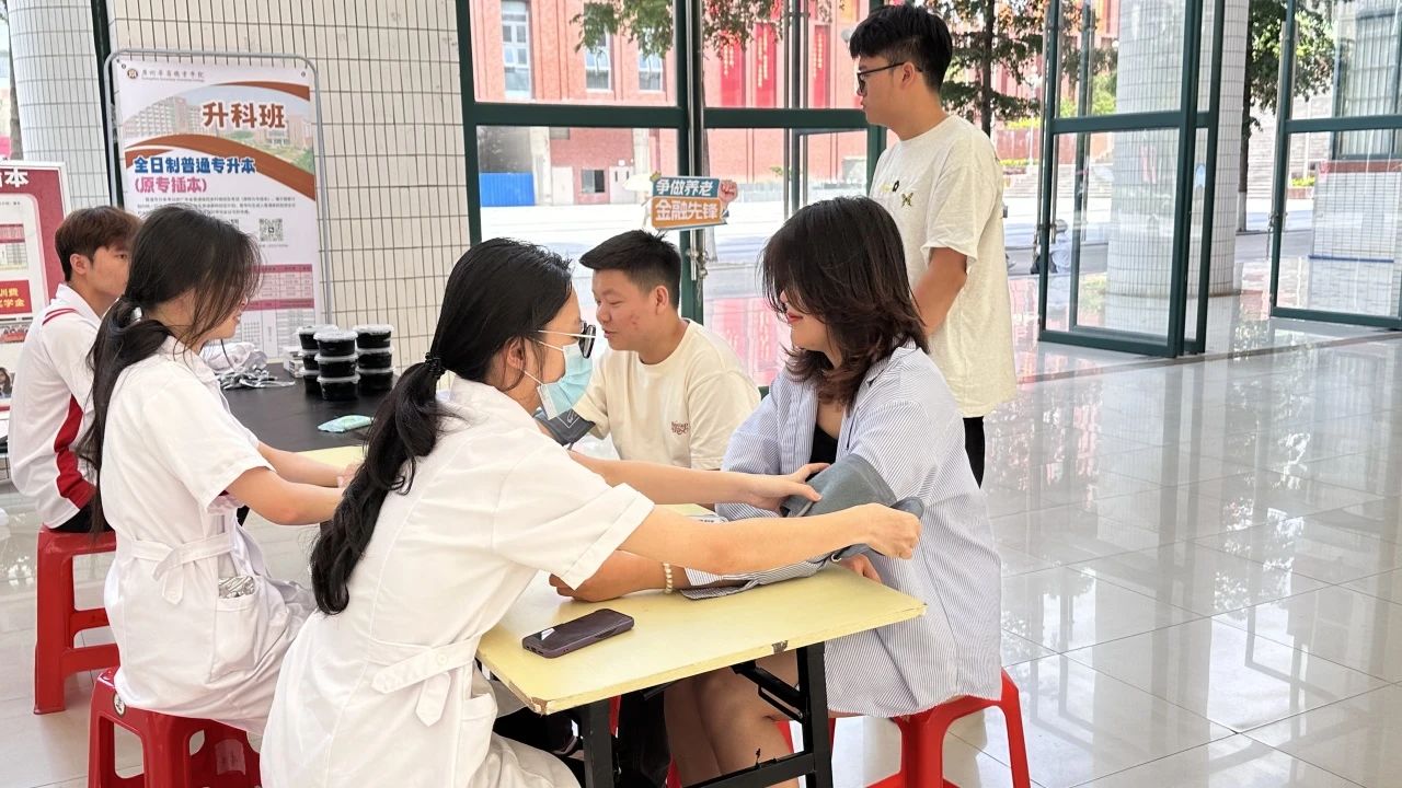 活动现场,班委们充分发挥护理专业优势,熟练地为老师和同学们测量血压,耐心解答大家关于健康的疑问。专业的操作、温暖的话语,让每一位参与的师生都感受到了23护理6班同学的用心与专业。