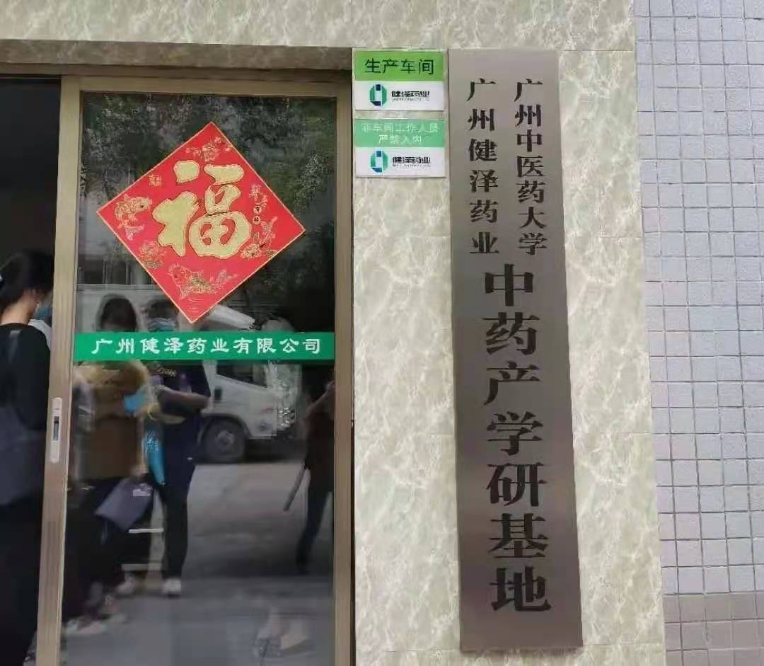 集团主要生产基地是分别位于清远高新技术开发区的广东在田药业有限公司和位于广州经济开发区的广州健泽药业有限公司。两个基地占地面积138亩,2003年钟南山院士及省市相关领导参加了基地的奠基仪式。广东在田药业有限公司是健泽集团2002年与广州医学院合作、投资人民币4000余万元建成并通过国家GMP认证的现代化制药企业。广州健泽药业有限公司是健泽集团2006年与香港星泽公司合作并投资人民币6000余万元在广州经济开发区按照国家GMP要求建设的中药生产企业,专业从事中药饮片研发、生产和销售,是中国中药饮片协会会员单位,已成为广州中医药大学主要的中药产学研基地和教学基地。