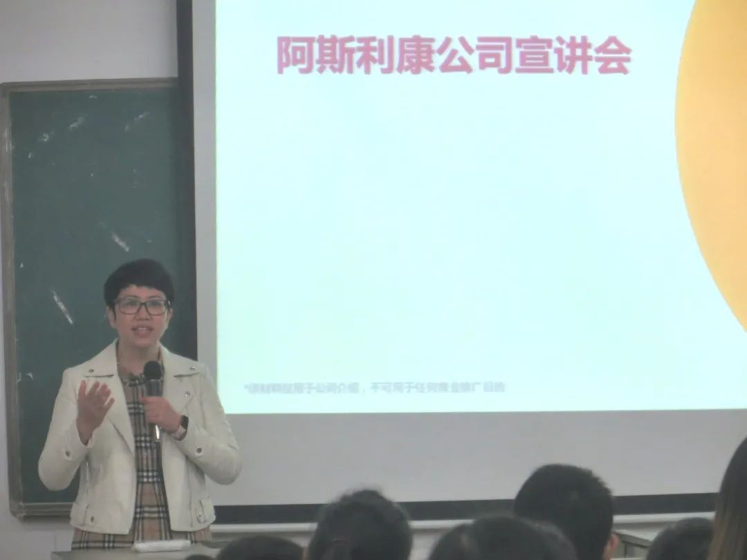 宣讲会上,首先,郑瑞总监向同学们介绍了公司的发展历程、公司目前所取得的成就以及人才招聘需求。接着,同学们就行业发展前景、工作环境、福利待遇、出国深造等问题进行提问,麦欣锐经理对同学们的疑问进行了解答,让同学们对阿斯利康公司的情况有了进一步的了解。会后,部分有意向的同学积极与翁欢欢经理联系咨询,对阿斯利康公司进行更深的了解,明确就业方向 。