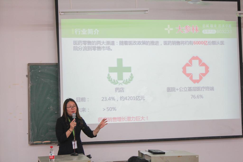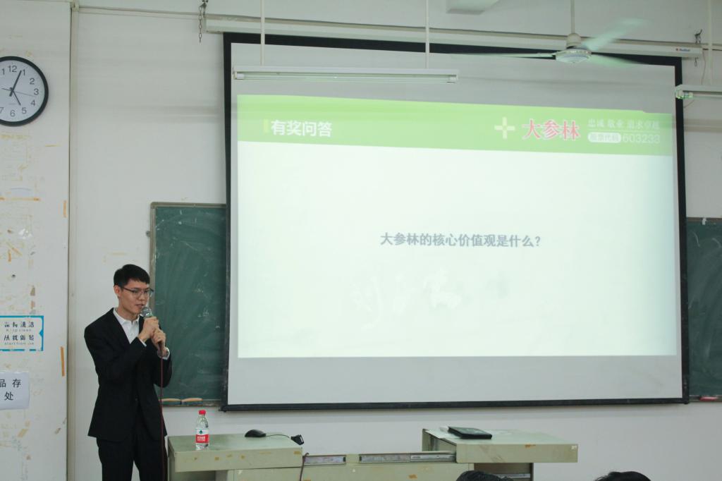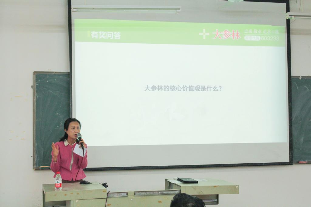 为宣传大参林医药集团的企业文化,同时缓解我院应届学生就业压力,健康医学院于11月30日下午4:00-5:20在博c501举行“大参林医药集团”企业宣讲会。饶水群经理、梁杨清老师、黄剑涛经理、谭宁老师等出席本次宣讲会。