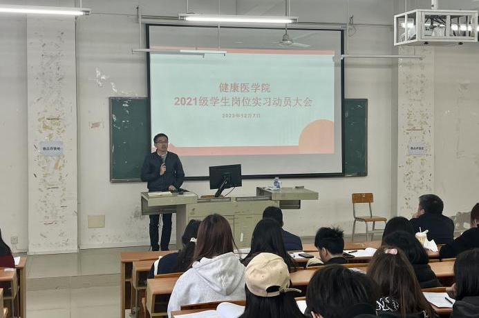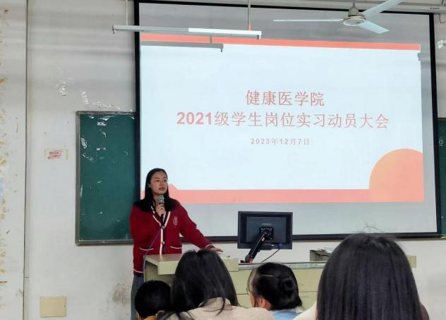 为顺利推进2024届毕业生实习工作的开展,强化学生安全意识、责任意识;明确实习的任务、目标和意义,引导学生做好实习前的各项准备工作,能够更好地顺利完成岗位实习任务,健康医学院于12月7日在博学楼分批召开2024届毕业生岗位实习动员大会。