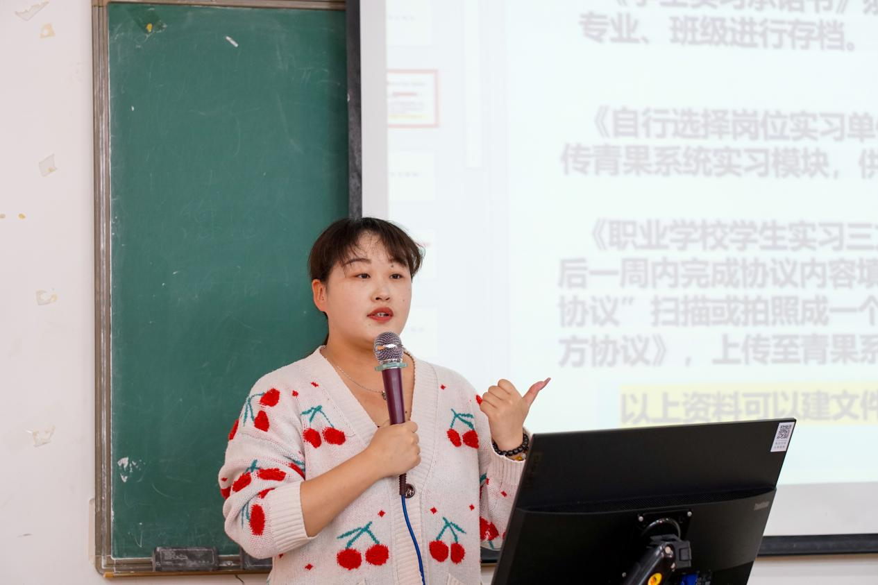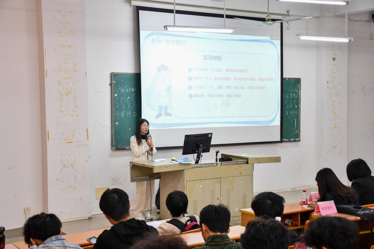 实习专员李倩老师深入解读了实习材料的具体要求和细节,提出“无三方不实习”的要求,着重强调了维护学生权益的重要性。她明确了实习的具体时间安排、各项要求及不同流程的注意事项,包括自主申请岗位、专升本、入伍等特殊情况的处理办法。此外,李倩老师还强调学生实习期间需定期和指导老师沟通,按时完成实习材料,以全面而细致地评估实习效果。