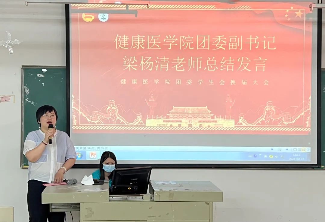 会议最后一项议程,由健康医学院团委副书记梁杨清老师总结发言。