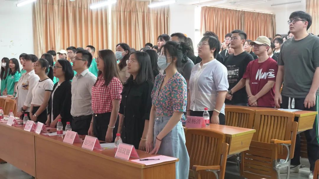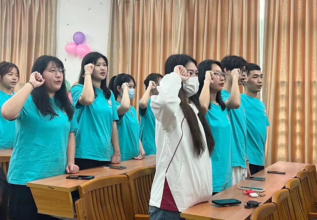 22级团委学生会干事全体起立,进行庄严宣誓。严于律己,宽于待人,展现出作为学院未来支撑者的形象,也希望在未来的日子里,大家一起努力,为健康医学院团委学生会贡献出自己的力量。