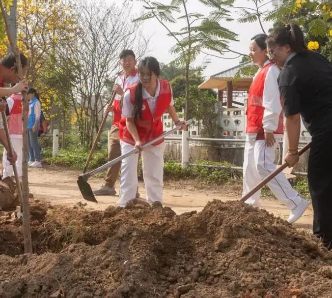 春回大地,万物复苏,正是植树造林的好时节。为积极响应国家乡村振兴战略,助力绿美乡村建设,3月14日,健康医学院学生第三党支部书记张明雪老师和献章书院团委书记杨安祺老师带领20名学生志愿者前往江门市新会区崖门镇水背村开展植树志愿活动,以实际行动为乡村增添新绿,贡献青春力量。