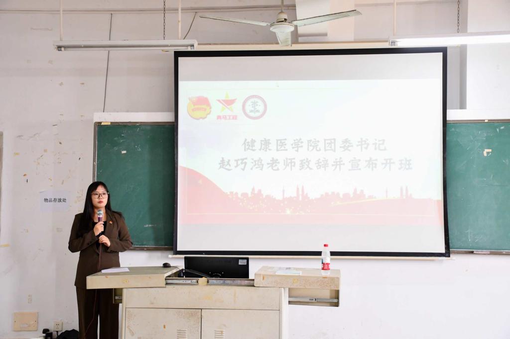 出席本次开班仪式的有:健康医学院学生第一党支部书记何泓老师,学生第二党支部书记、院团委书记赵巧鸿老师,辅导员李倩老师、杨敏娟老师、李康容老师、钟柳熙老师、王宏越老师、林炯智老师以及第三期青马培训班全体学员。