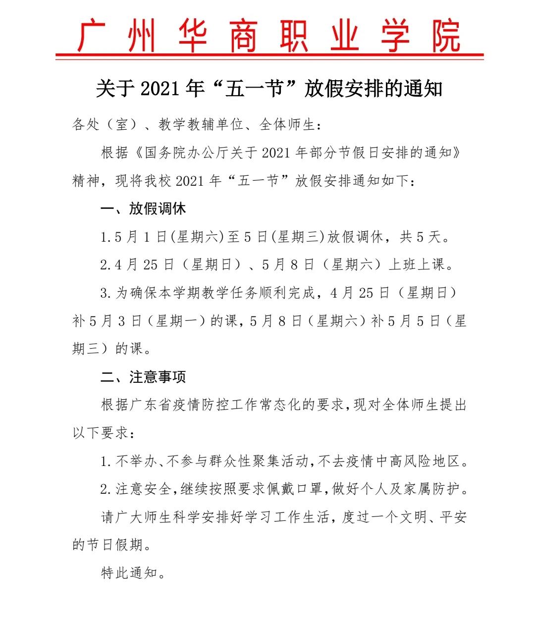 下一条:广州华商职业学院关于2020年国庆节及中秋节放假调休安排的通知