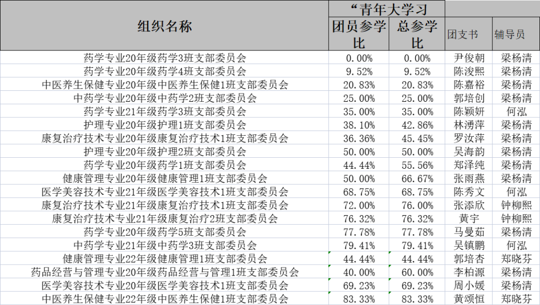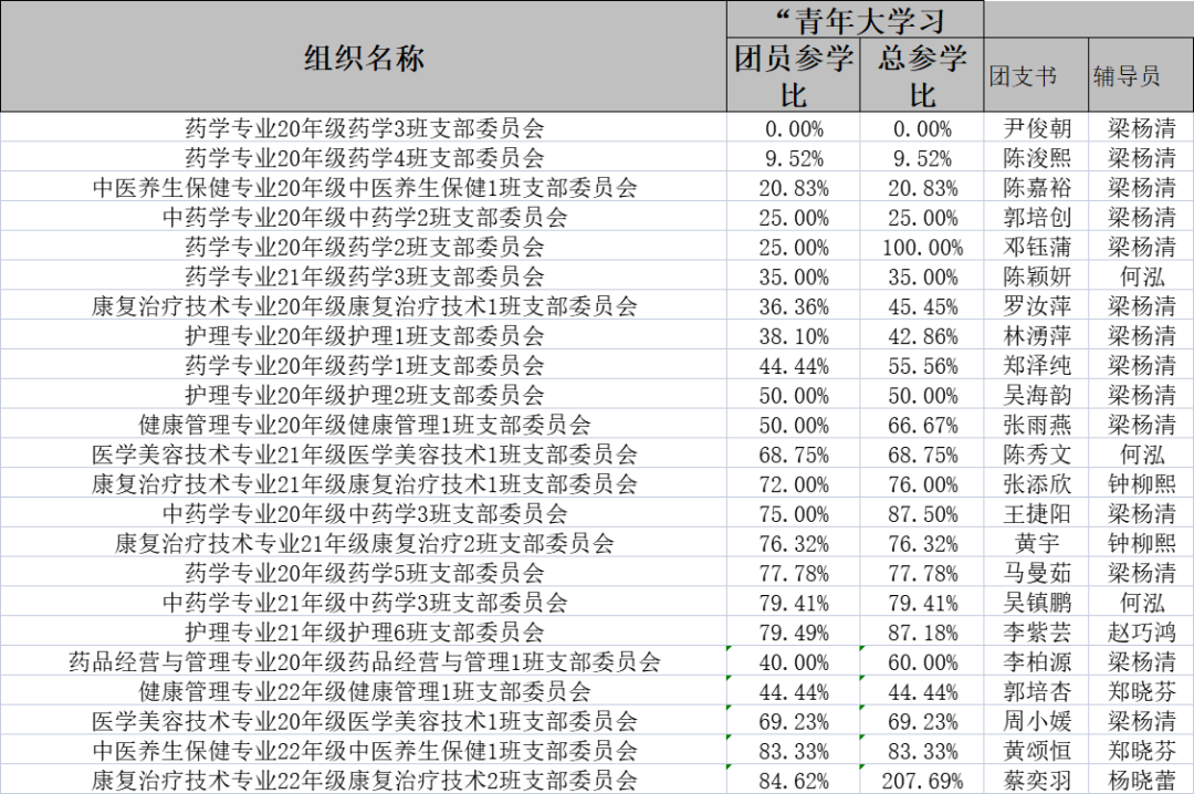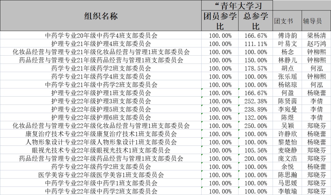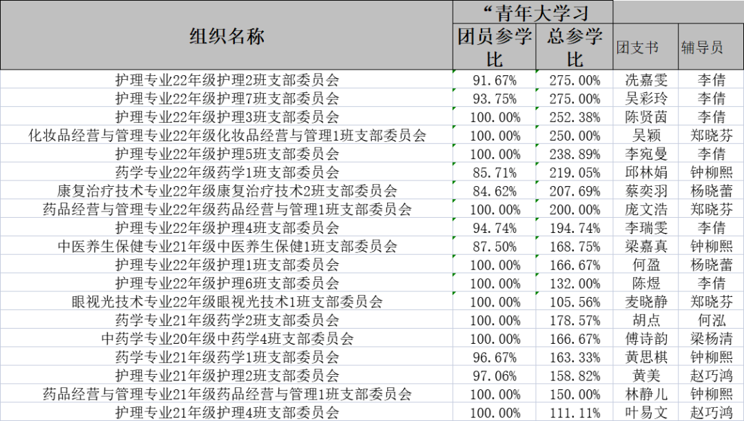 以上班级在2023年第15期的“青年大学习”中班级总参学率超过了100%,真棒,为你们点赞!请继续保持!