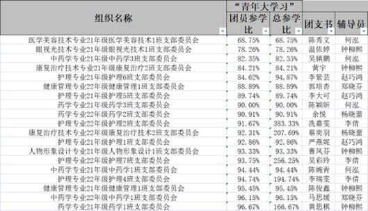 以上班级在2023年特辑的“青年大学习”中班级总参学率超过了100%,真棒,为你们点赞!请继续保持!