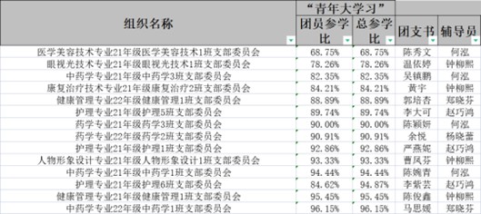 以上班级在2023年特辑的“青年大学习”的团员参学率较低,请积极动员广大团员开展青年大学习,要加油哦!
