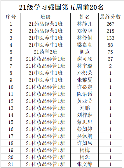 21级学习强国排名公示