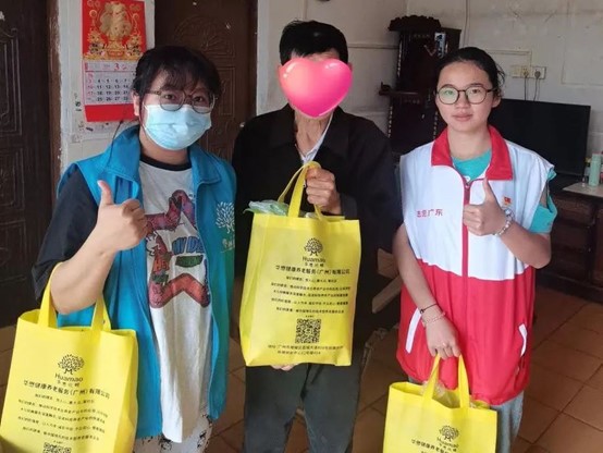 图为“医心为民”实践队队员为长者派送新鲜蔬菜