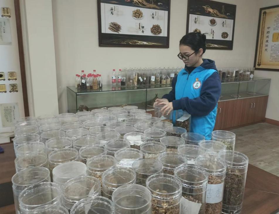 图为志愿者打扫中药标本馆