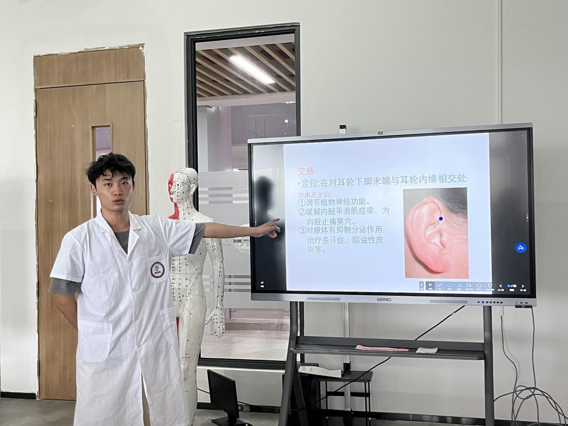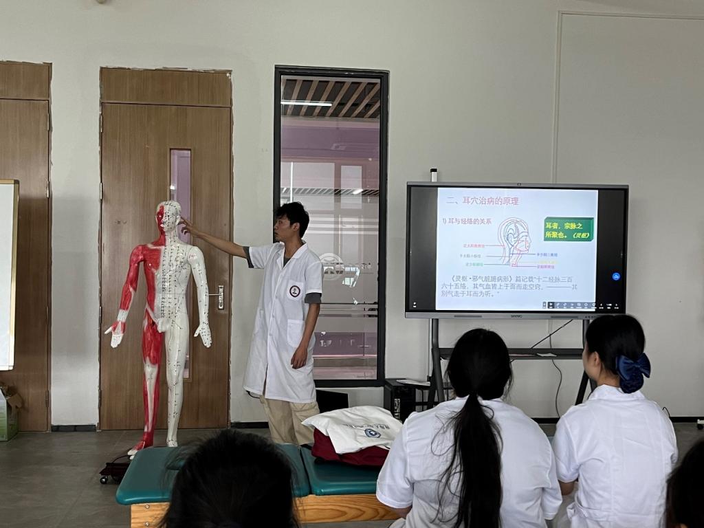 最后,通过许梓淳同学生动地讲解和实操演示,学员们积极动手实践,逐渐掌握了耳穴贴压法的核心要点。同时,许梓淳同学还针对学员们在实践中可能遇到的问题进行了深入剖析和解答,让学员们对这一疗法有了更加全面和深刻地认识。
