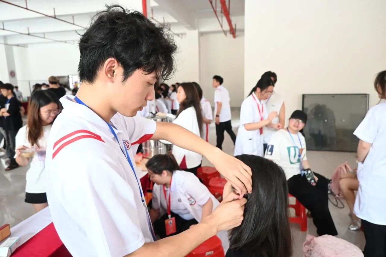 5月25日,一场主题为“非遗进校园,传承新体验”的文化盛宴在广州华商职业学院广州校区正式启幕。健康医学院以专业特色为依托,推广中医养生理念,养生香包、花茶、拔罐、推拿按摩、血压测量等与非遗艺术相结合,让师生在品味历史新韵的同时,感受传统文化的独特魅力。
