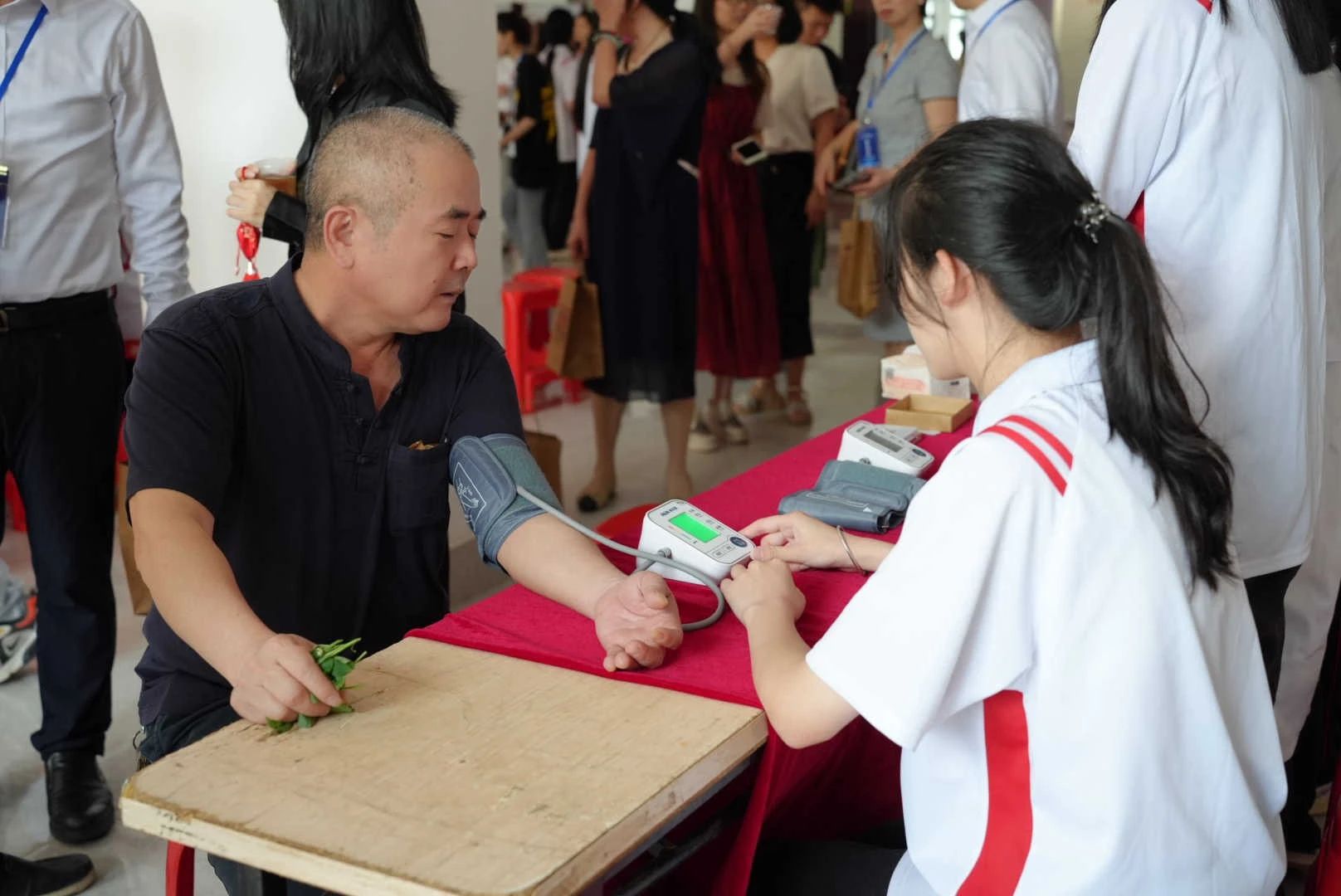 养生香包以其精美的工艺和独特的香气,让人仿佛置身于古老的东方庭院之中;花茶则以其独特的口感和养生效果,受到师生们的喜爱;拔罐和推拿按摩作为中医外治法,通过刺激穴位和经络,达到舒筋活血、缓解疲劳的效果;血压测量则让师生们及时了解自己的健康状况,预防高血压等慢性疾病。