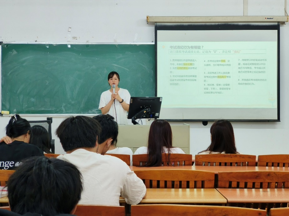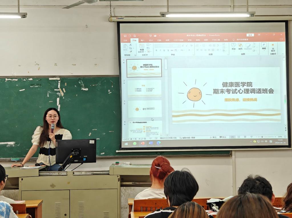 健康医学院于第18周组织各班级开展以“与诚信携手同行,同舞弊挥手作别”和“期末考试心理调适”为主题的主题班会教育,旨在通过这两个主题,帮助学生在期末考试期间保持良好的心态,严格遵守考场纪律,诚实守信地完成考试。
