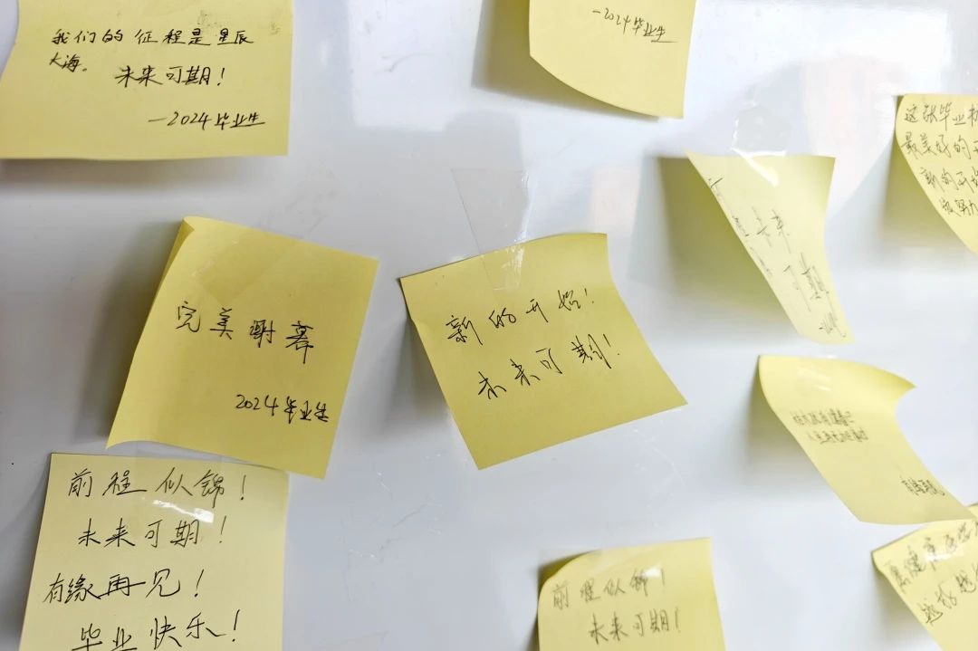 留言墙上的便利贴随着暖风轻轻飘动