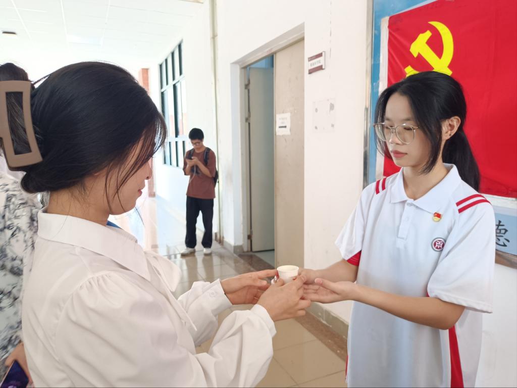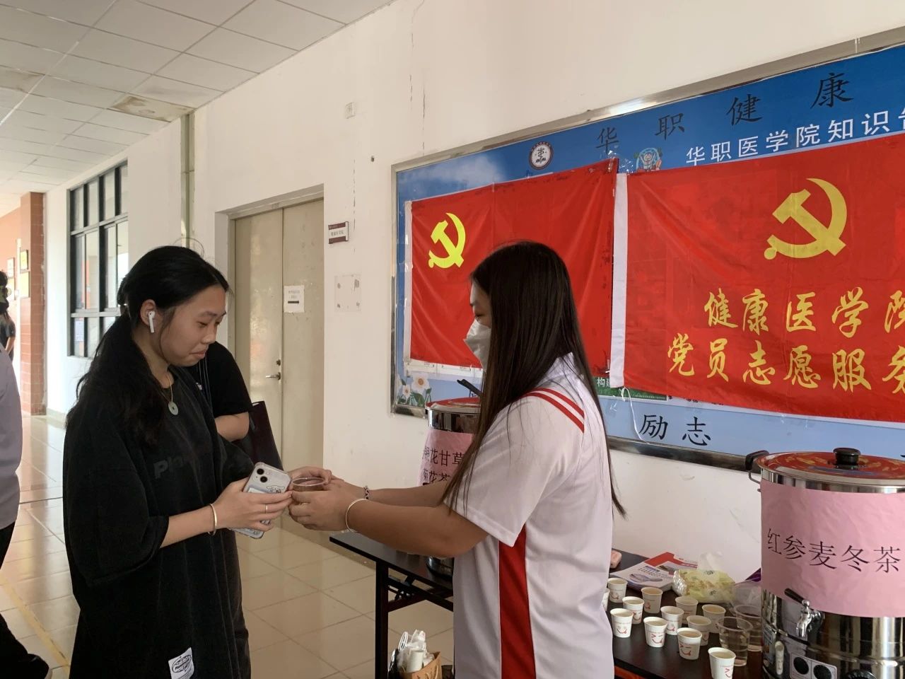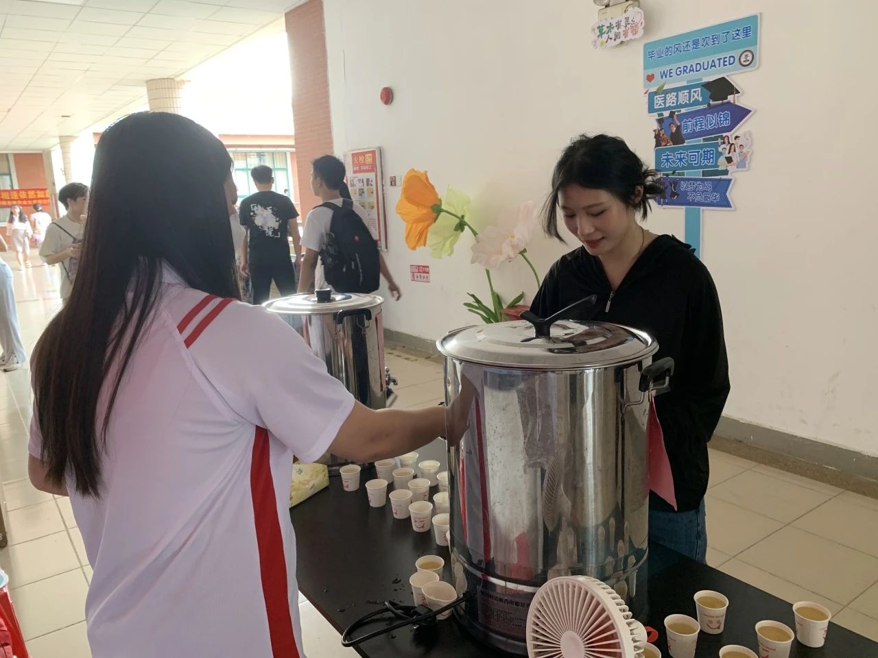 不仅如此,为了让毕业生们感受到学院的关怀与温暖,党员志愿服务队还特别准备了清热降火、止咳祛痰的金银花甘草菊花茶和补充气血的红参麦冬茶。每一杯花茶都代表着对毕业生们的美好祝愿,希望他们在未来的日子里,能够像这花茶一样,散发出属于自己的芬芳,绽放属于自己的光彩。