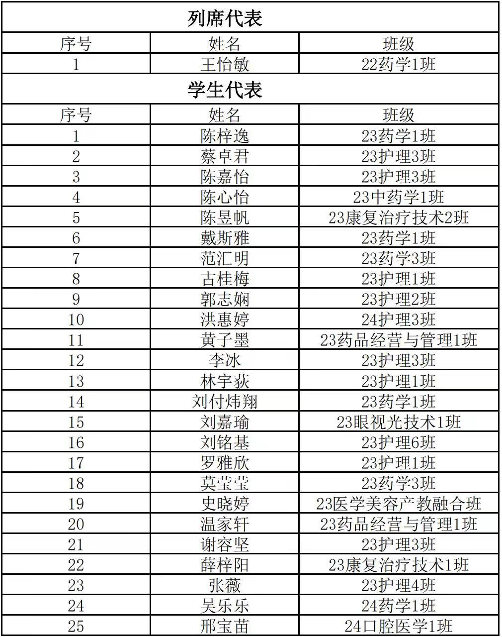学生代表公示如下