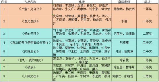 在此,恭喜以上同学。同时,我们由衷地感谢每一位参与者的热情投入。在追求学业进步的同时,我们也要学会关注自己的心理健康,用积极的心态拥抱美好的校园生活。相信通过此次活动,同学们在未来的学习生活中能够以更加积极乐观的心态面对挑战。