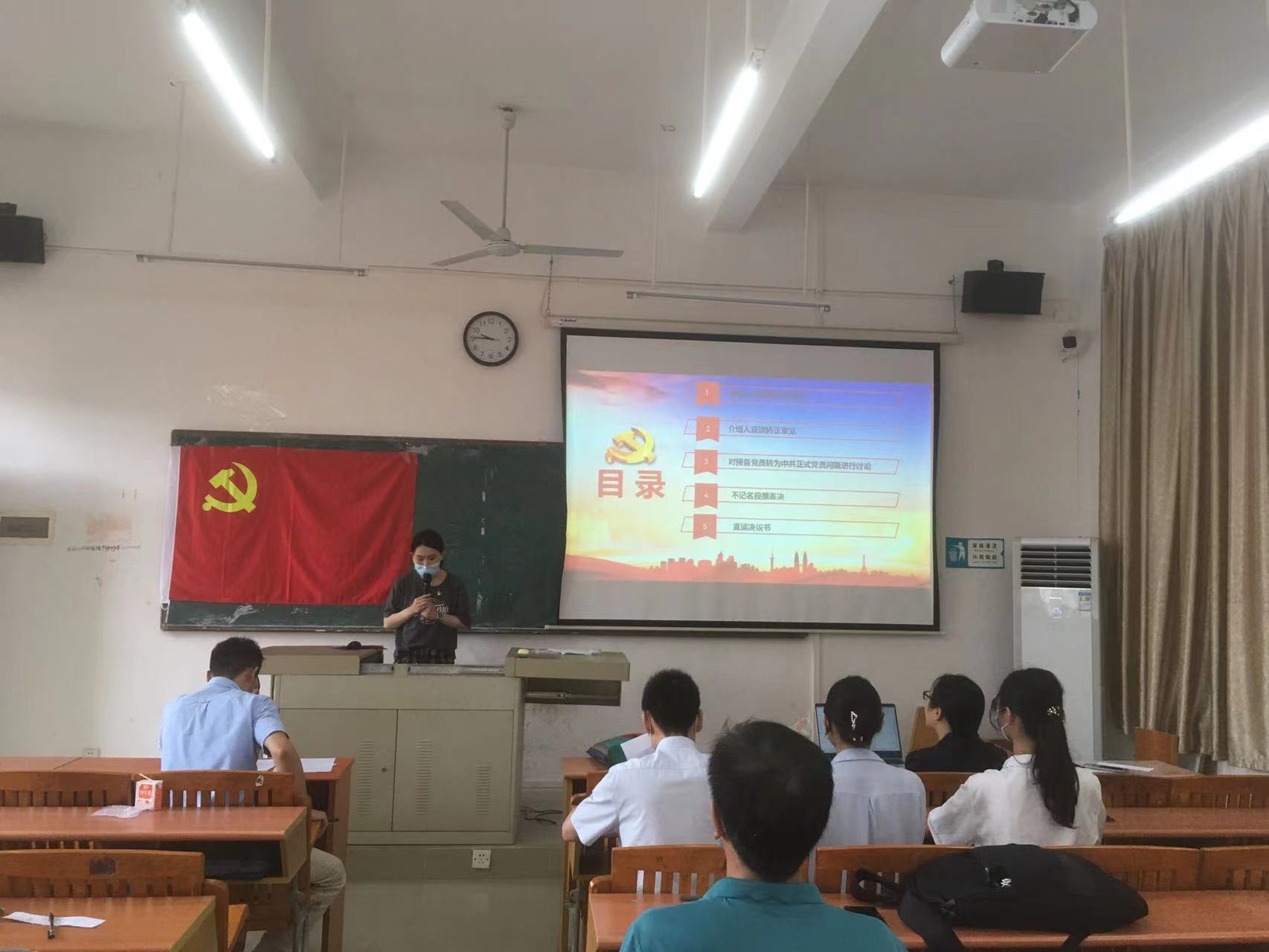 本次转正的预备党员名单有杨滔、胡裕蓓、冯滢瀛。三位预备党员依次宣读自己在预备期间思想、生活和工作上的表现情况,总结了自身的成长,同时也反省了自身的不足之处,恳请党组织批准转正。