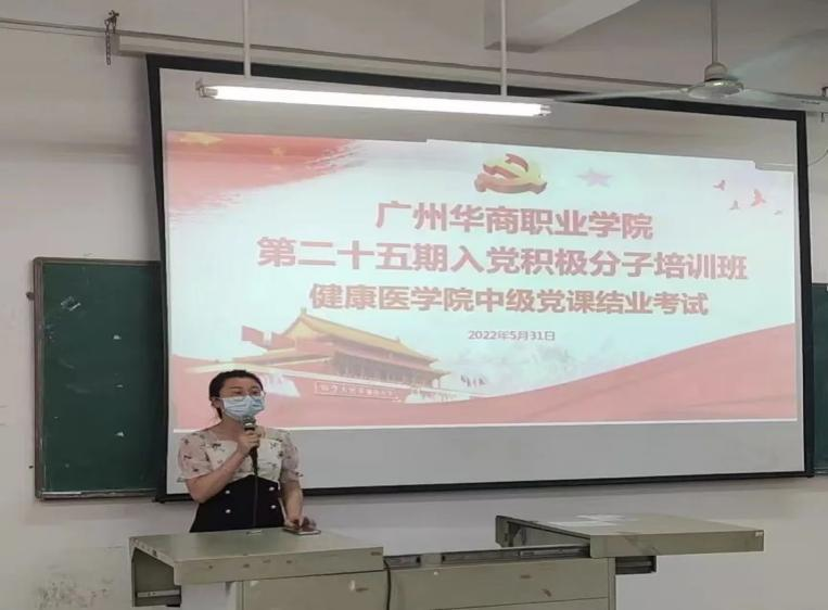 为加强学员们的思想政治教育,检验学员们对深入学习党的先进理论知识的学习成果,提高学员政治素养,强化学员们学习理论知识的成果运用,健康医学院党总支严格按照学校党委的有关要求,于2022年5月31日中午12:20,于博学楼C501,顺利组织广州华商职业学院第25期入党积极分子培训班健康医学院中级党课结业考试。