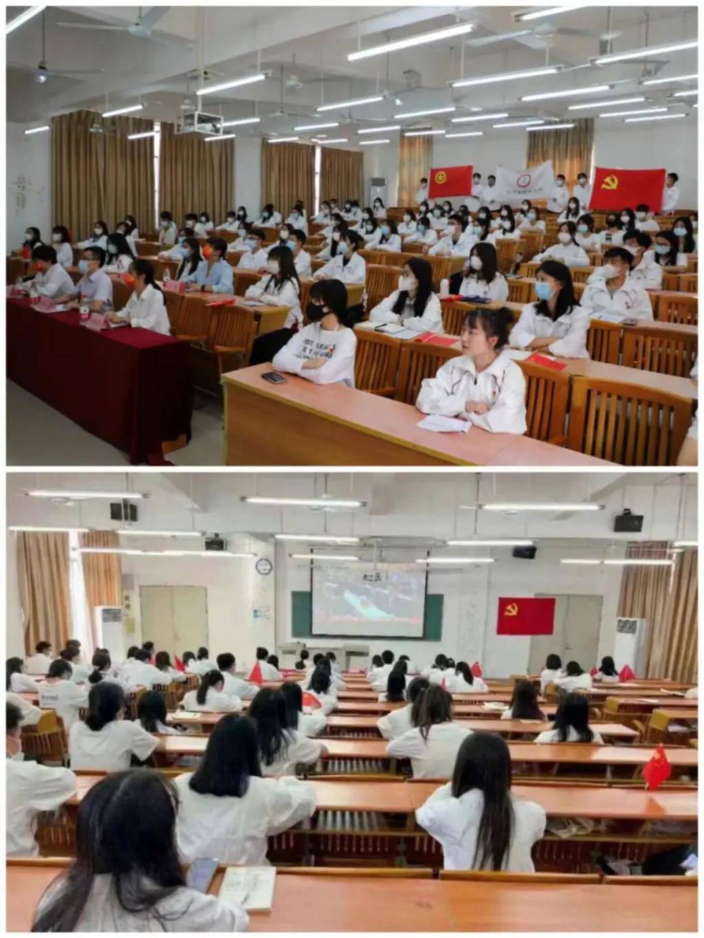 2022年10月16日上午10点,举世瞩目的中国共产党第二十次全国代表大会在北京人民大会堂开幕,习近平总书记代表第十九届中央委员会向大会作报告。健康医学院学生党支部组织党员在博C401收听收看开幕会盛况。