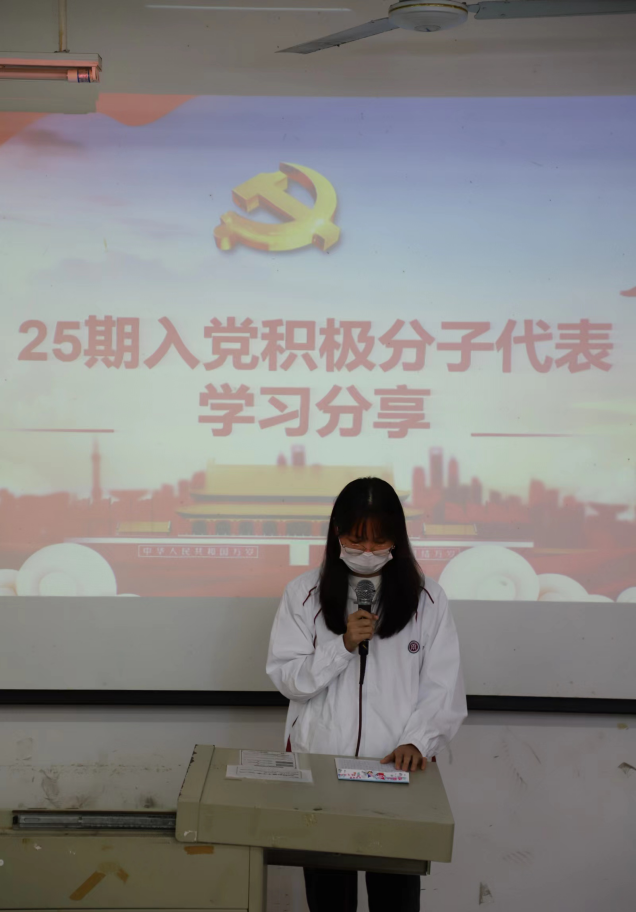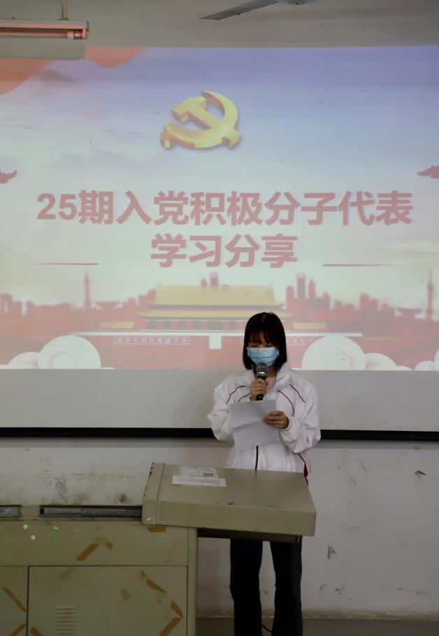 然后,25期入党积极分子代表黄宇等同志上台演讲。他们表示,作为当代青年要不忘初心,牢记使命,为人民服务,争取做一名优秀的党员,不负习主席对我们的殷切期望,希望我们共勉前行,奏响新征程的赞歌。