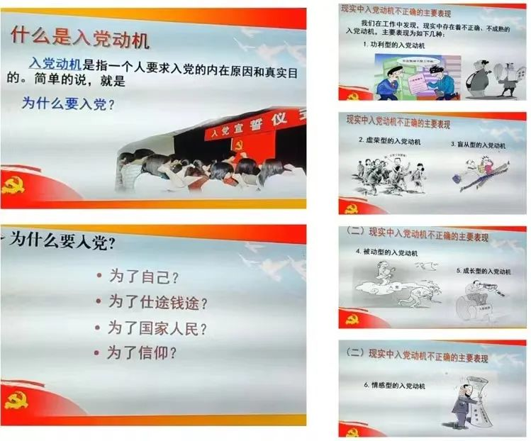 党课开始,潘京萍老师问:“什么是入党动机?(既为什么要入党?)”这一问题引发同学们深入的思考。围绕这一问题,潘京萍老师谈到了六种错误的入党动机,由此指出正确的入党动机:在思想上承认党的纲领和党的章程,并在行动上努力实践,积极投身于为社会主义,共产主义奋斗的事业,才能说他具备了正确的入党动机。潘京萍老师说,加入共产党就是来为人民服务,来牺牲付出的,这才是正确的入党动机,只有端正了动机,有了正确的方向,才不会迷茫,走偏。