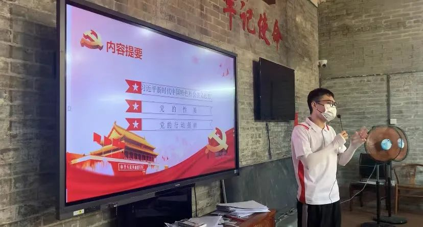 今天在祠堂里,我们和村民们学习了习近平新时代中国特色社会主义思想、党的性质、党的最高理想和最终目标等党史知识,重温了党史的经典内容,最让我记忆深刻的是总书记说过的一句话“一切向前走,都不能忘记走过的路;走得再远、走到再光辉的未来,也不能忘记走过的过去,不能忘记为什么出发。”作为中共预备党员,我会始终牢记中国共产党人的初心和使命,也会时常学习党史,将党员前辈的红色精神继续传承下去的。
