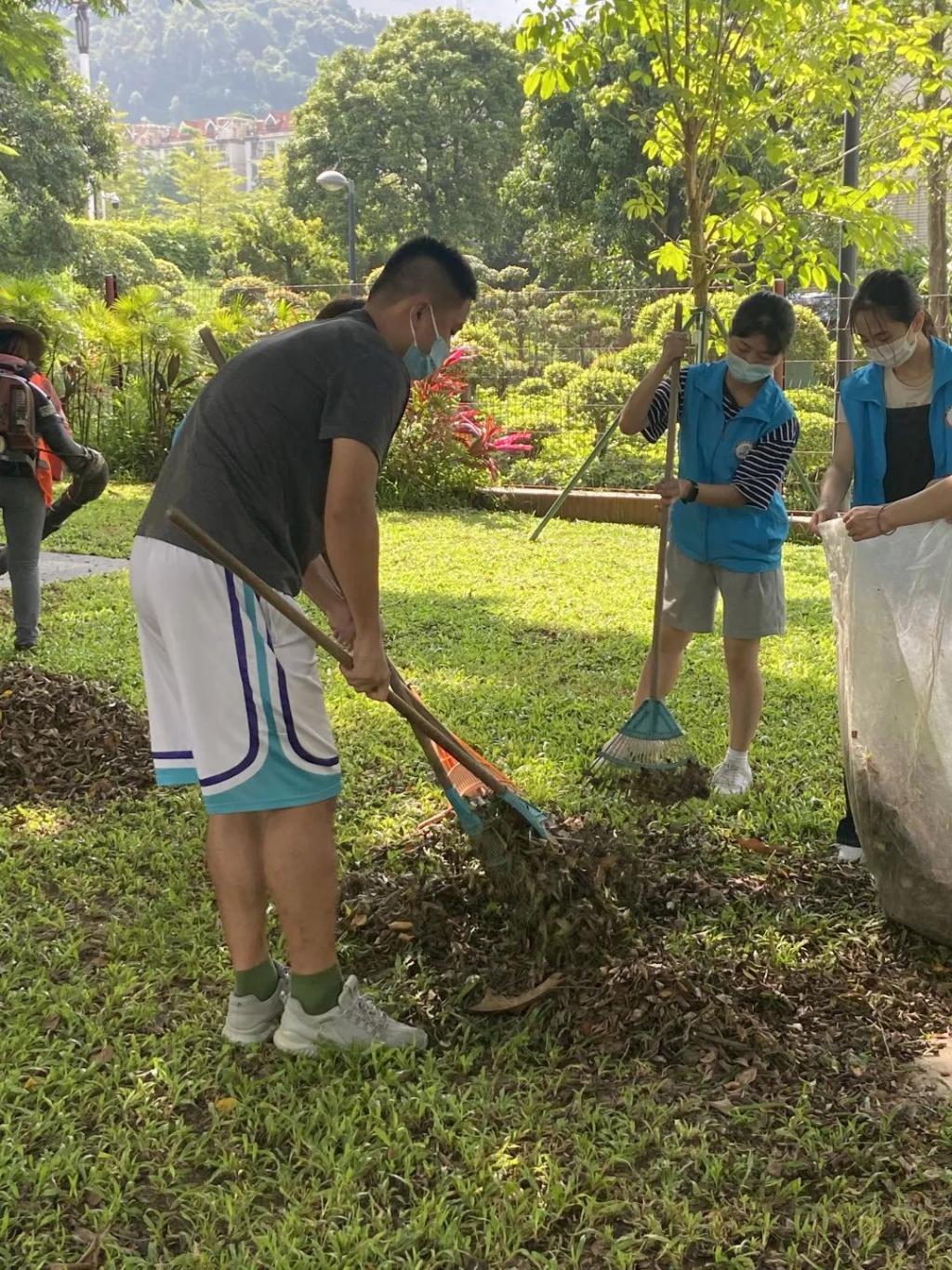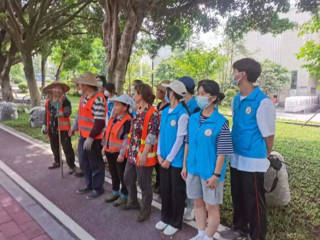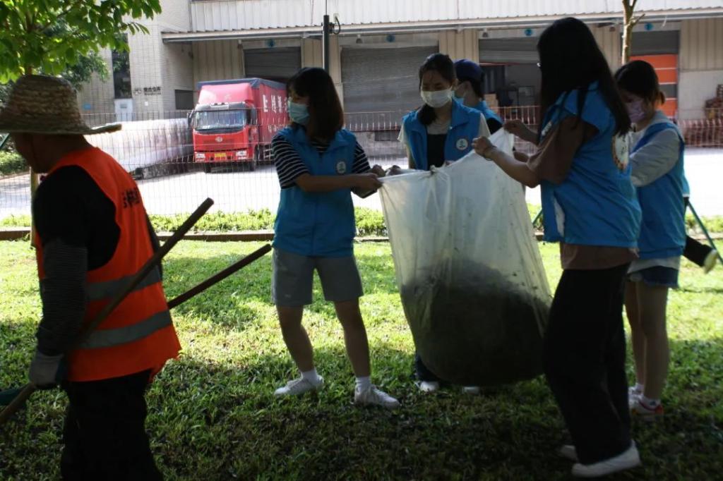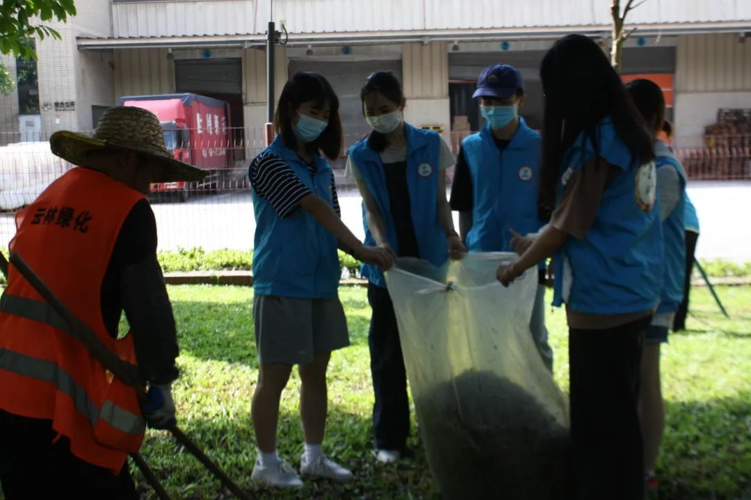 烈日当空的正午,我们有一段美好的插曲。在步行到制药厂的途中,遇到了汗流浃背的环卫工人在打扫枯叶,同学们当即决定帮助环卫工人干活,传递爱心,传播文明。同学们在把关怀带给社会的同时,也传递了爱心.传播了文明;大大的发扬了我们的志愿精神,深刻体现了我们活动的初衷。