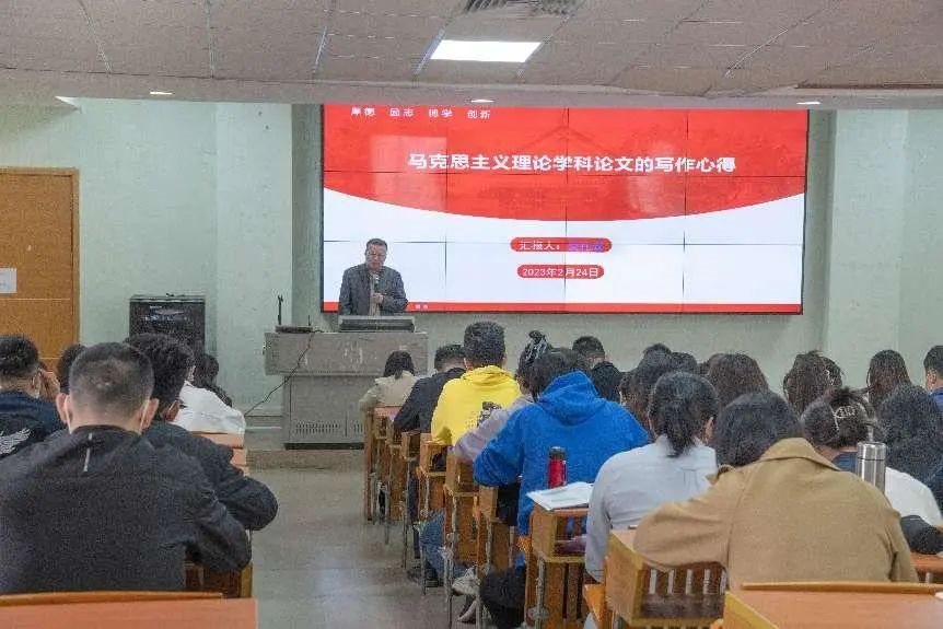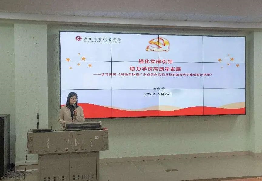 24日上午,组织部长潘京萍以《强化党建引领 助力学校高质量发展》为主题带领全体学员一同学习《加强和改进广东省民办高校党组织领导班子建设暂行规定》。党委书记翁礼成从马克思主义理论学科论文的选题、引文、主题、结尾四个方面,结合写作实例给全体学员分享了写作心得和写作技巧。