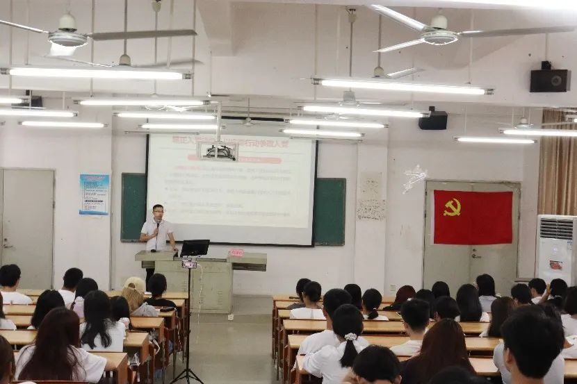 为了引导学生坚定理想信念,端正入党动机,健康医学院于2023年10月17日中午在博B501、博B401、博B301、博B201,博B207同时召开秋季学期初级党课第一讲,本次党课由健康医学院党总支黄泽栋副书记主讲。