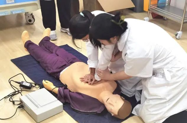 本次“心肺复苏”救护知识培训中,杨老师亲自上场给我们做正确示范,边做示范边讲解。