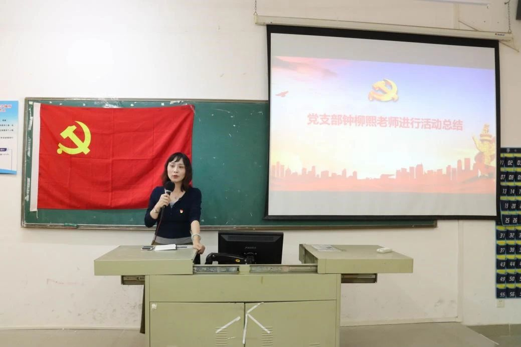 大会第四项:第二党支部组织委员钟柳熙老师作此次活动总结发言。