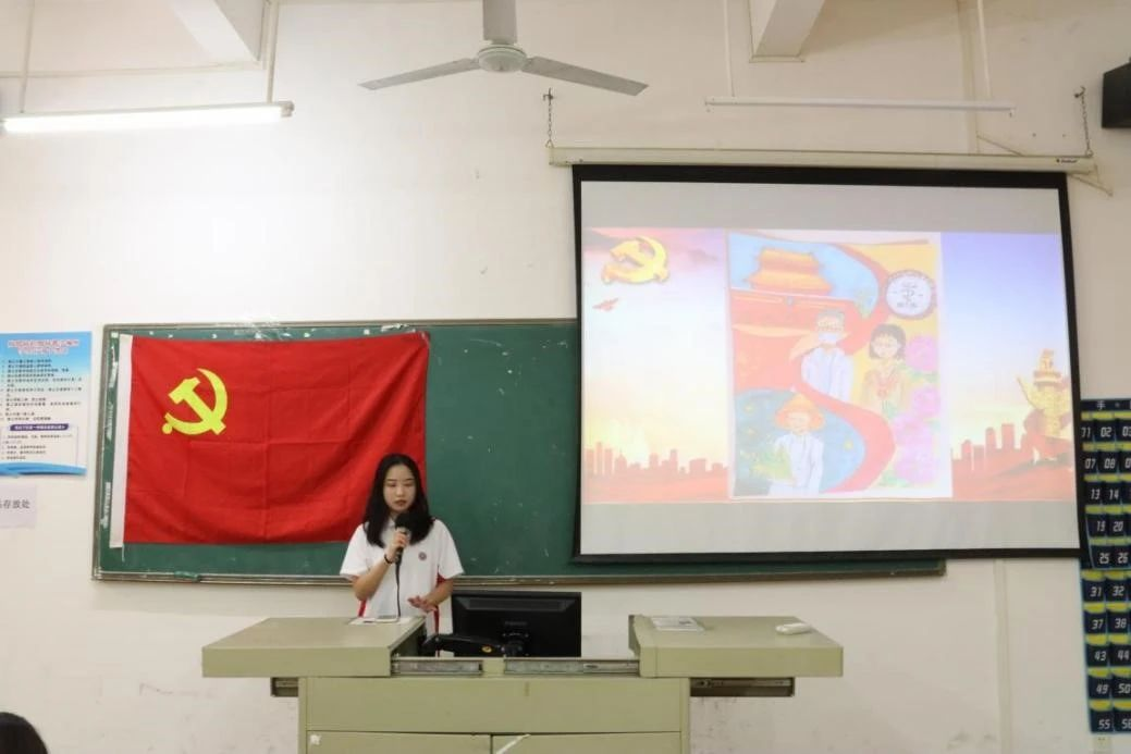 学生第二党支部吴漫萍同志、林伶俐同志、郑欢儿同志就个人手工绘画作品进行学习分享。