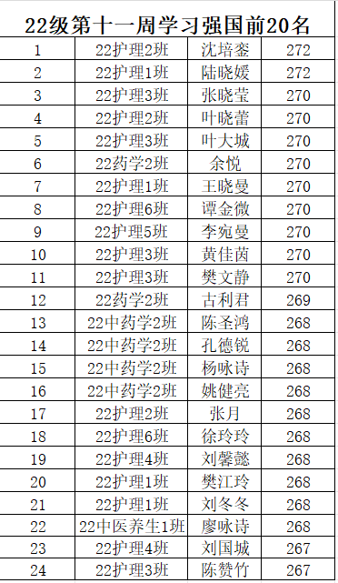 22级学习强国排名公示