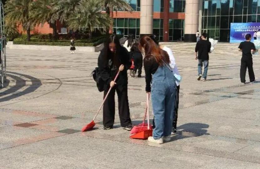 上午毕业合照一结束,志愿者们就顶着烈日在中央图书馆广场进行卫生清扫,在清扫的过程中,志愿者们积极踊跃,全情投入,紧密合作,大大提升了清扫效率,一个个忙碌的身影也成为校园亮丽的风景。