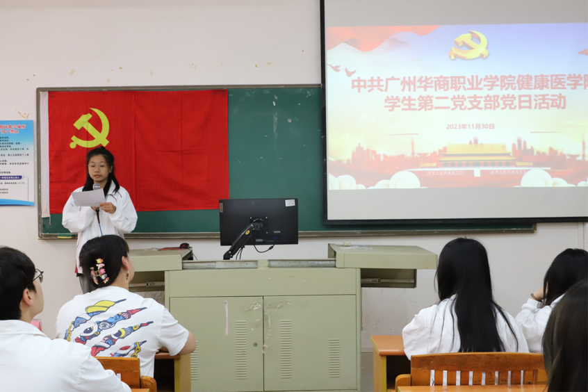 为了弘扬爱国主义精神,凝聚全面建设社会主义现代化国家、全面推进中华民族伟大复兴的磅礴力量,激发党员的爱国情怀和奋斗动力。健康医学院学生第二党支部于2023年11月30日中午在博学楼b303展开“爱国主义教育”主题党日活动,参加此次活动的老师有学生第二党支部赵巧鸿书记、宣传委员李倩老师、组织委员钟柳熙老师以及全体学生党员,本次活动由学生党务办公室史晓婷同学主持。