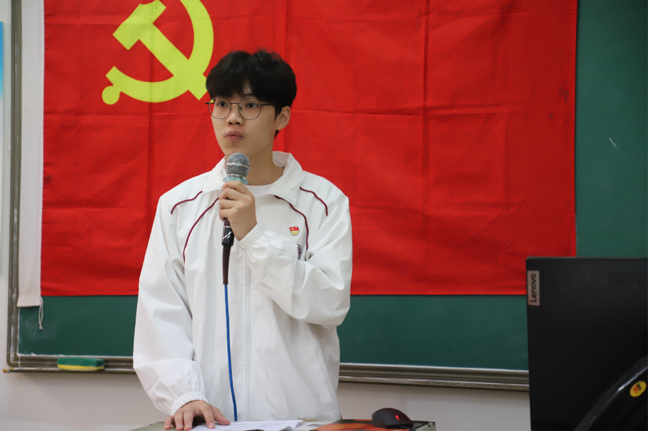 学生第二党支部傅灿杰同志、吴漫萍同志、林伶俐同志上台分享学习《中华人民共和国爱国主义教育法》心得。