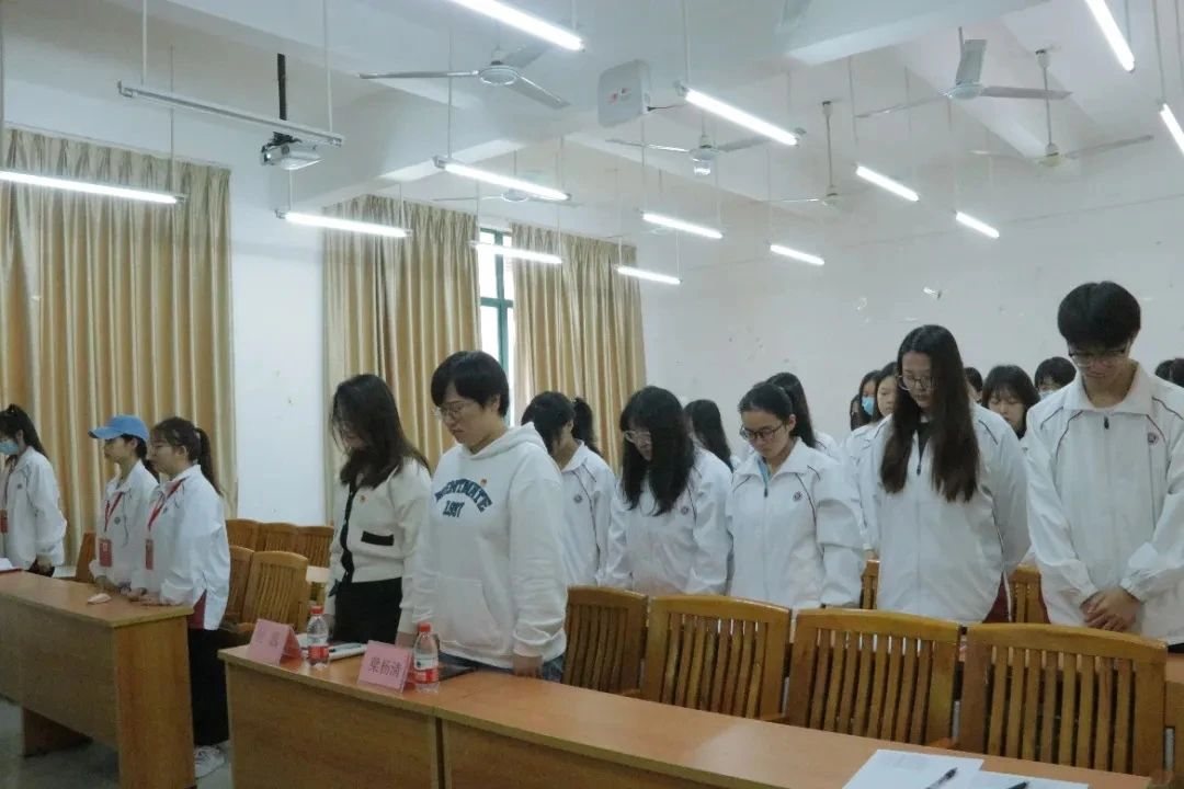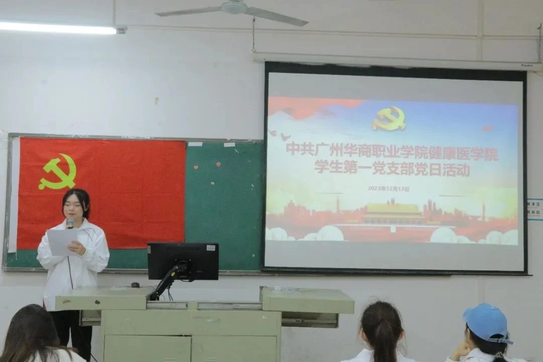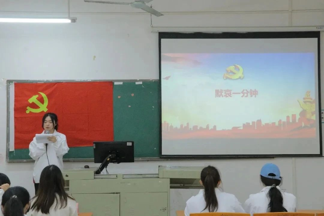 铭记苦难历史,汲取前进力量。为深切缅怀革命先烈和遇难同胞,提高党性觉悟,健康医学院学生第一党支部于2023年12月13日中午在博学楼b205举行国家公祭日主题党日活动暨授予预备党员党徽仪式。参加此次活动的老师有健康医学院学生第一党支部书记何泓、学生第一党支部宣传委员梁杨清以及全体学生党员,本次活动由学生党务办公室罗瑜同学主持。